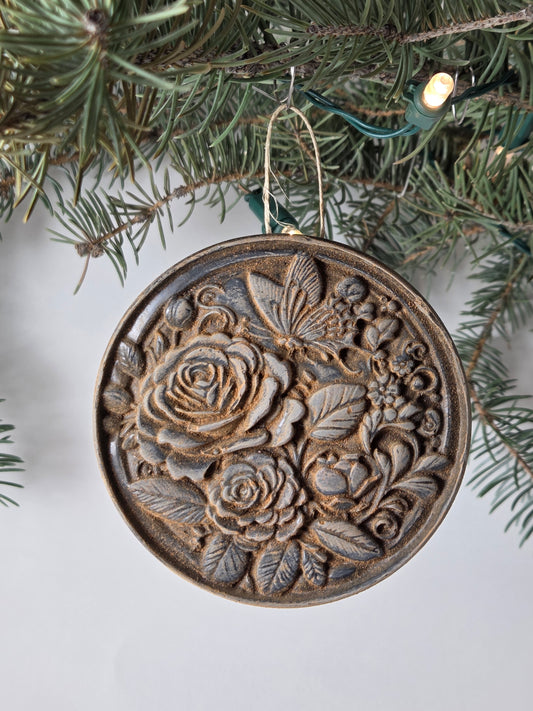Lush blooms and botanicals to adorn your Christmas tree or hang in a window as a suncatcher.