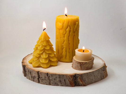 Wilderness Bear & Deer Pillar | Double-Sided Beeswax Candle