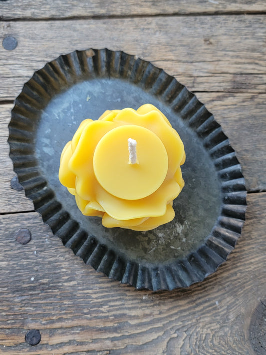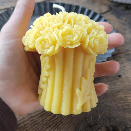 Frilly Carnation Pillar | Floral Beeswax Candle