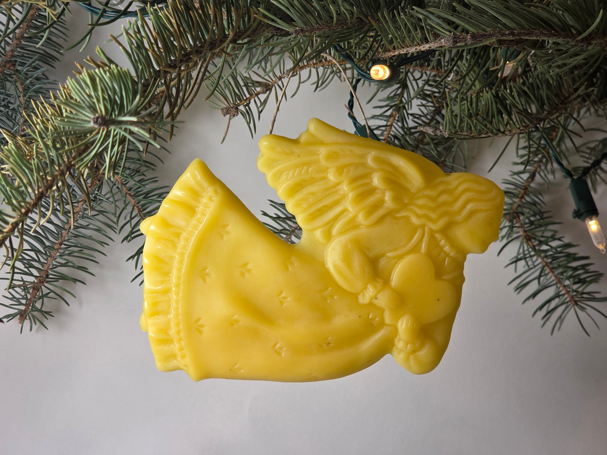 Choose between unscented natural yellow beeswax or our wonderfully fragrant antiqued cinnamon finish. Both have a twine loop for hanging. Yellow has no added scent, but retains its subtle honey aroma. Antiqued cinnamon is made with tinted beeswax and cinnamon oil, with a ground cinnamon rub on the surface. Store in a cool place. Store cinnamon ornaments in an airtight bag between seasons of use to preserve the scent.