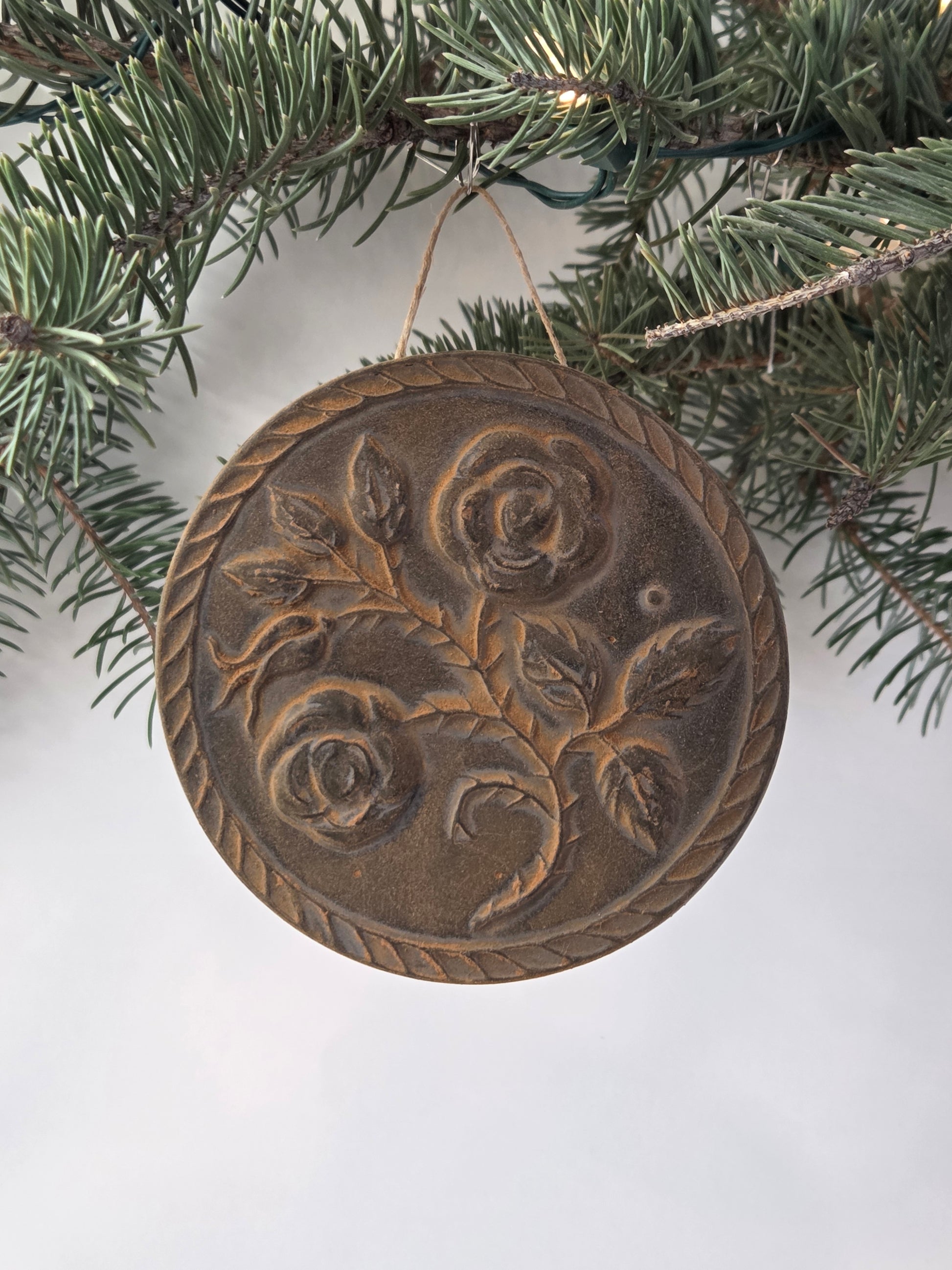 Choose between unscented natural yellow beeswax or our wonderfully fragrant antiqued cinnamon finish. Both have a twine loop for hanging. Yellow has no added scent, but retains its subtle honey aroma. Antiqued cinnamon is made with tinted beeswax and cinnamon oil, with a ground cinnamon rub on the surface. Store in a cool place. Store cinnamon ornaments in an airtight bag between seasons of use to preserve the scent.