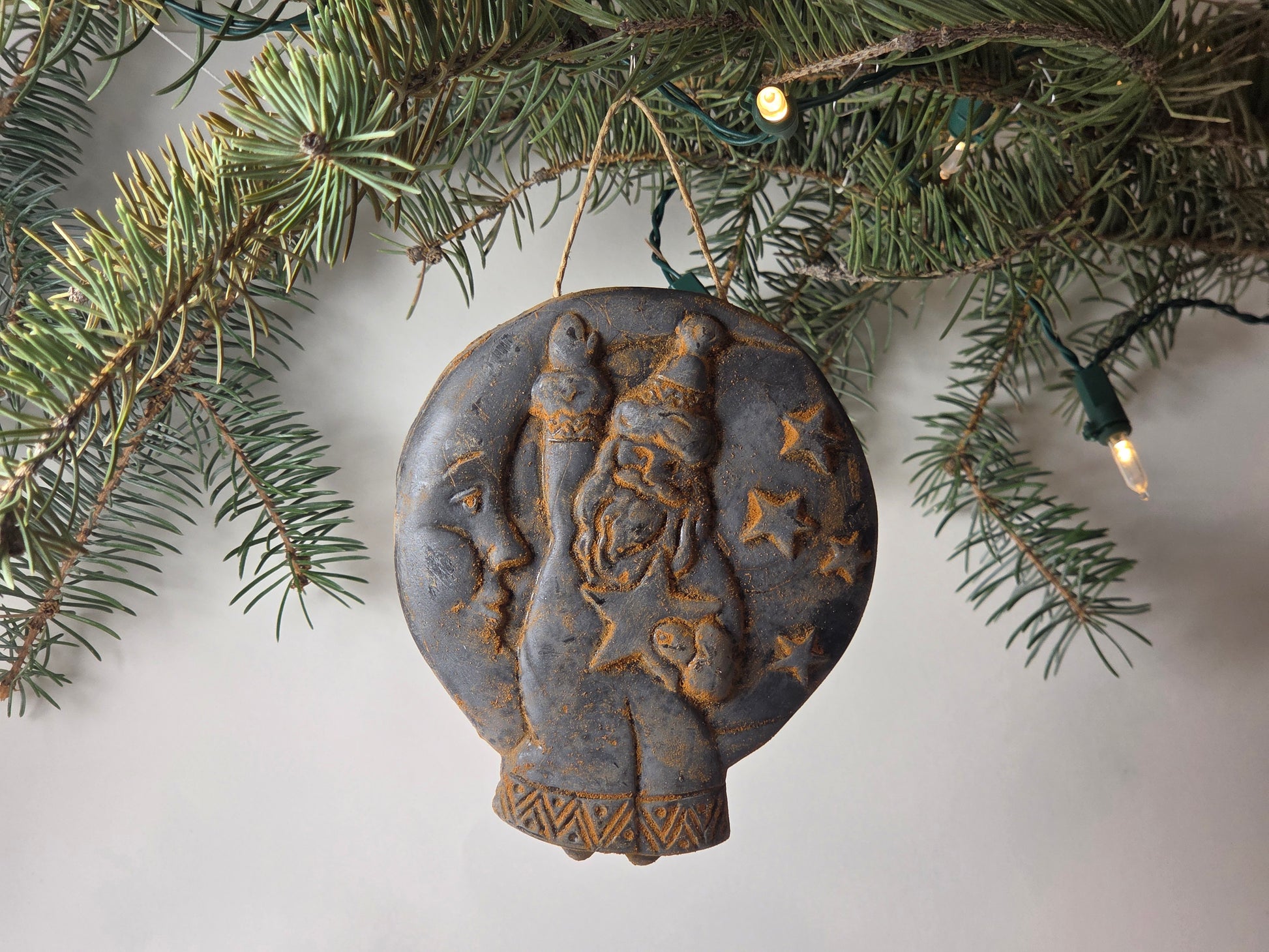 Choose between unscented natural yellow beeswax or our wonderfully fragrant antiqued cinnamon finish. Both have a twine loop for hanging. Yellow has no added scent, but retains its subtle honey aroma. Antiqued cinnamon is made with tinted beeswax and cinnamon oil, with a ground cinnamon rub on the surface. Store in a cool place. Store cinnamon ornaments in an airtight bag between seasons of use to preserve the scent.