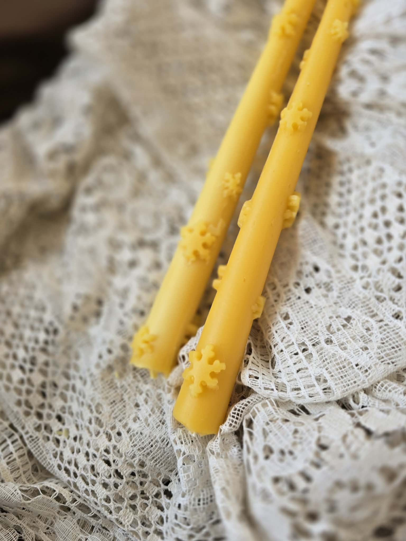 Snowflake Taper - Set of 2 | Beeswax Candles