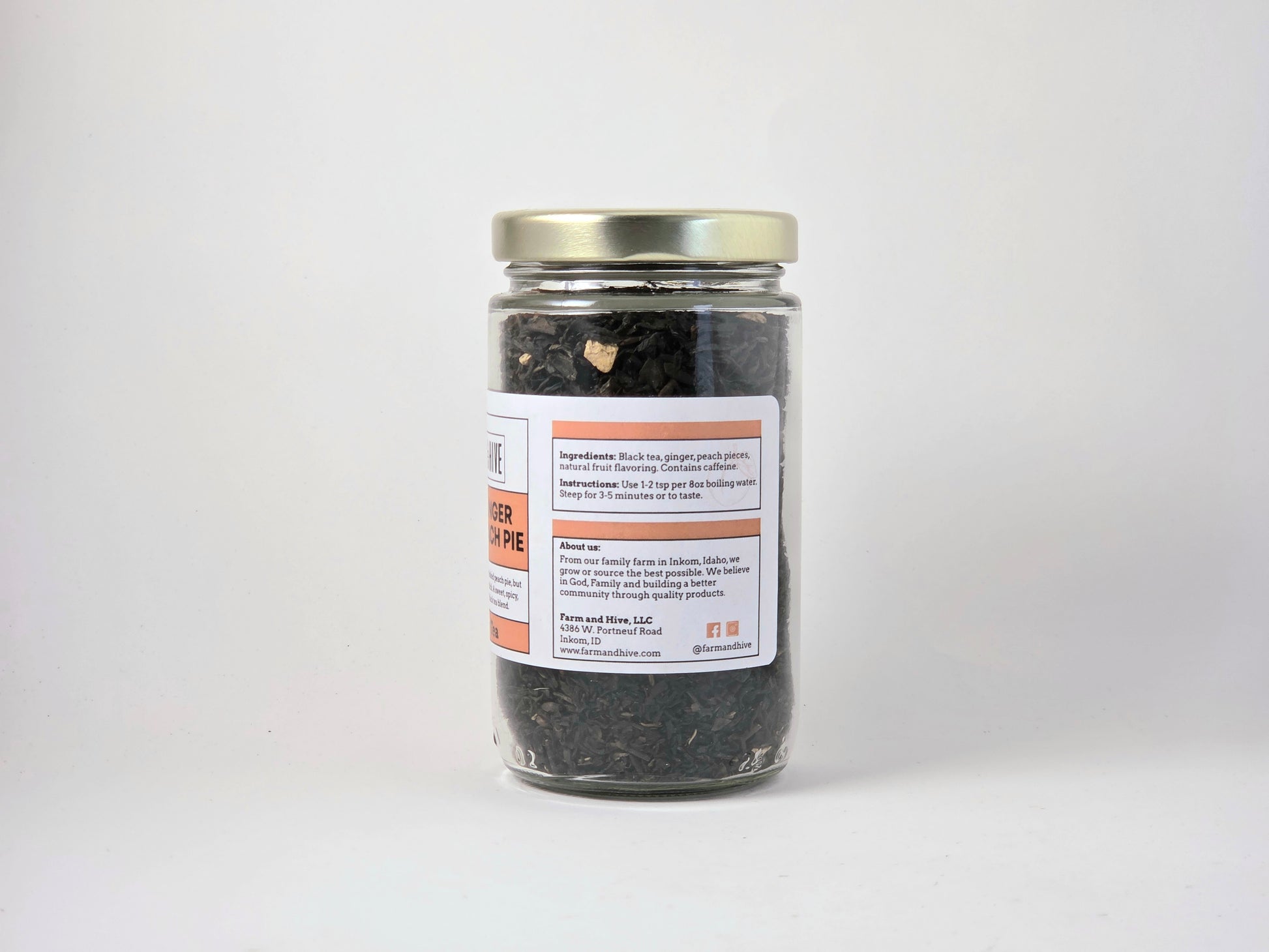 Ginger Peach Pie: It's like drinking a fresh-baked peach pie with a delicious ginger kick. A sweet, spicy, and well-balanced black tea blend. Try it with a dollop of whipped cream on top if you're feeling extra indulgent.