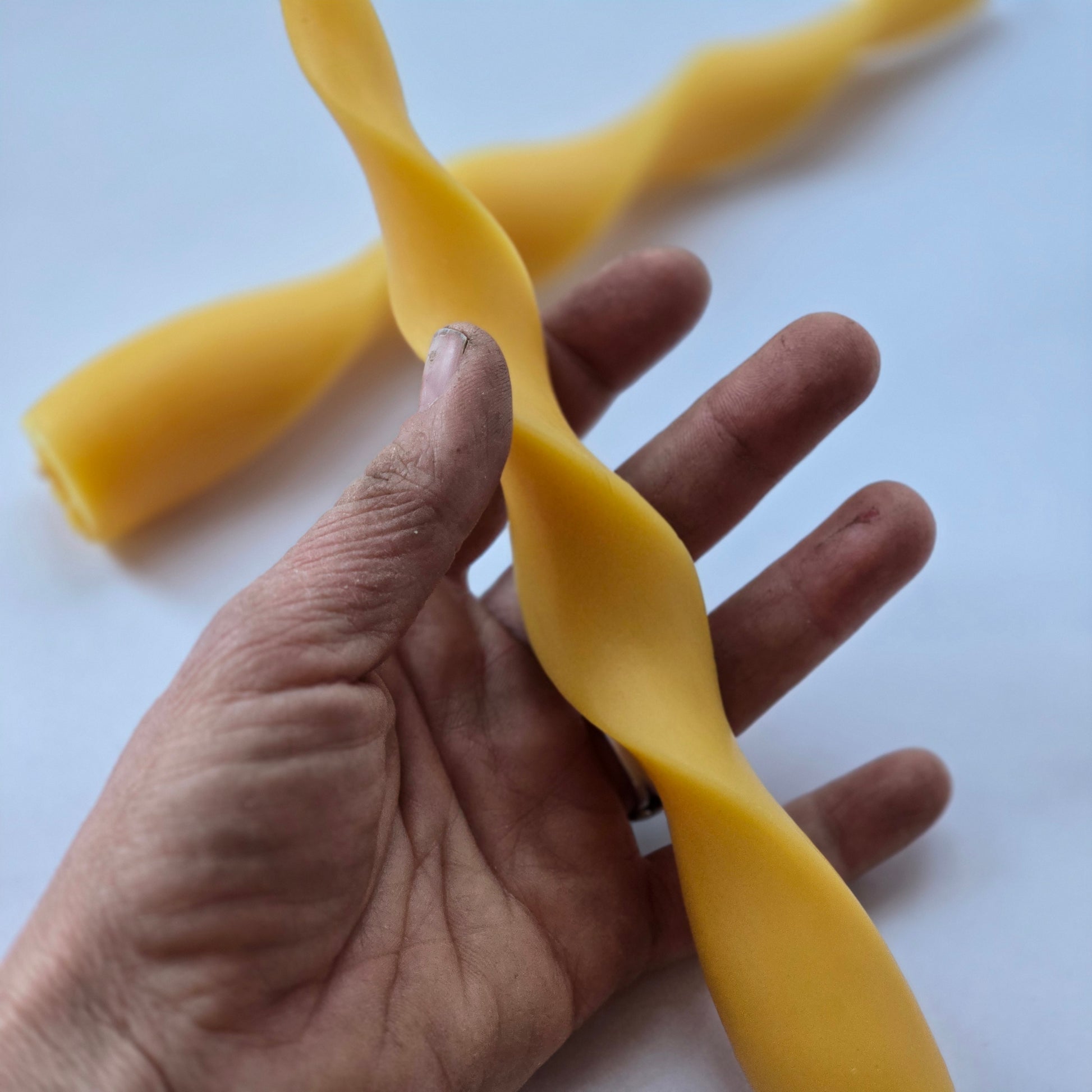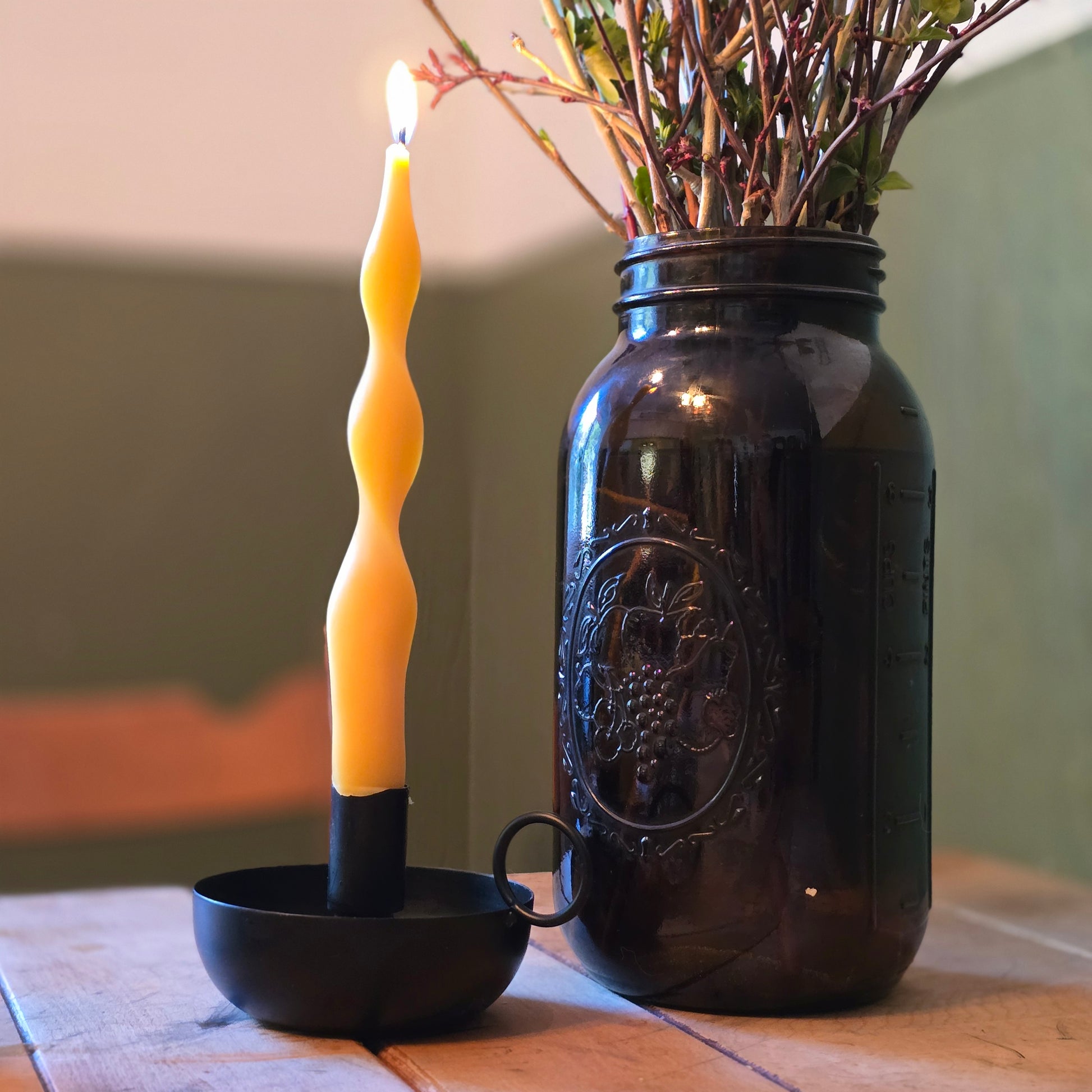 I thought it important to include a photo with the makers hands for these candles. My cut and bleeding hands, dirt under my nails, and rough dry skin contrast sharply with the smooth and timeless elegance of these. But that's just it, these rough hands have sown such beauty. These candles, made by my own farm-rough hands, elevate and enhance my simple life. I love that although I have what some may consider a "simple" life, I can still have beautiful beeswax candles to add whimsy and a touch of elegance to our humble table.