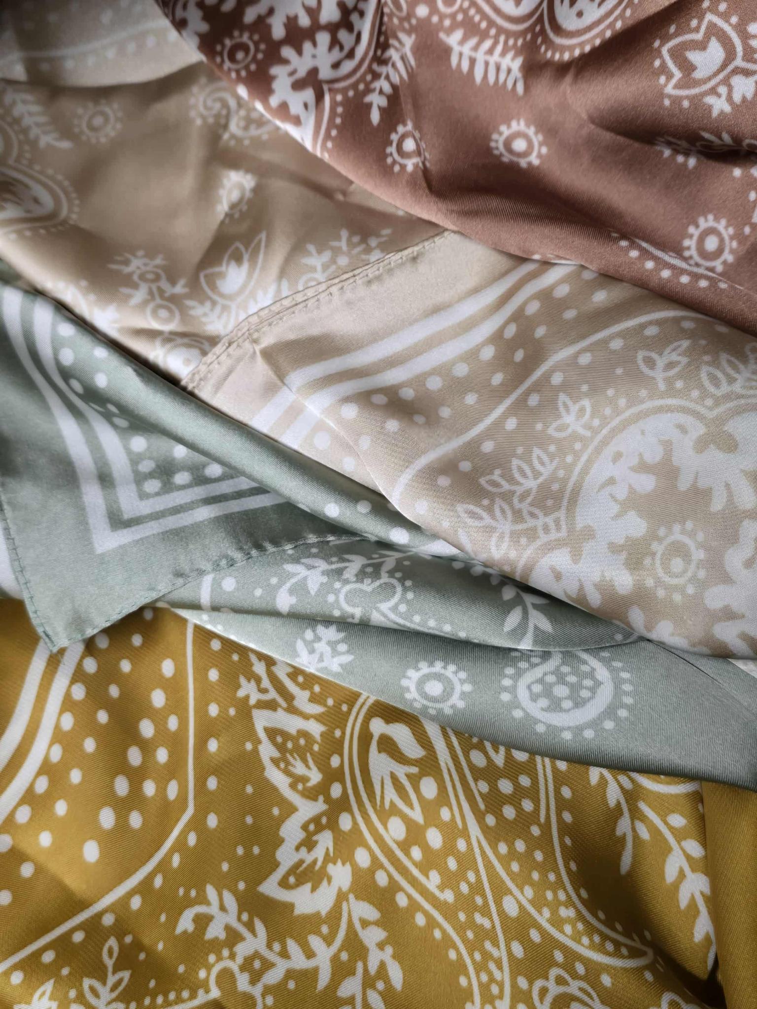 Ah, the ever practical wild rag. These silky, versatile wearables can be used for so many things. Protect your face and neck from the elements: sun, cold, dust, wind. Wet it down to keep cooler in the summer. Use it as a bandage, handle, carrying bag, or animal lead in a pinch. The uses are only limited by your imagination. And the biggest benefit according to me? Hay and straw won't get forever stuck in them, unlike every other scarf in existence.