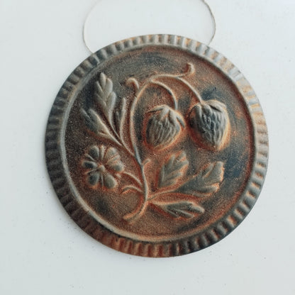 Choose between unscented natural yellow beeswax or our wonderfully fragrant antiqued cinnamon finish. Both have a twine loop for hanging. Yellow has no added scent, but retains its subtle honey aroma. Antiqued cinnamon is made with tinted beeswax and cinnamon oil, with a ground cinnamon rub on the surface. Store in a cool place. Store cinnamon ornaments in an airtight bag between seasons of use to preserve the scent.